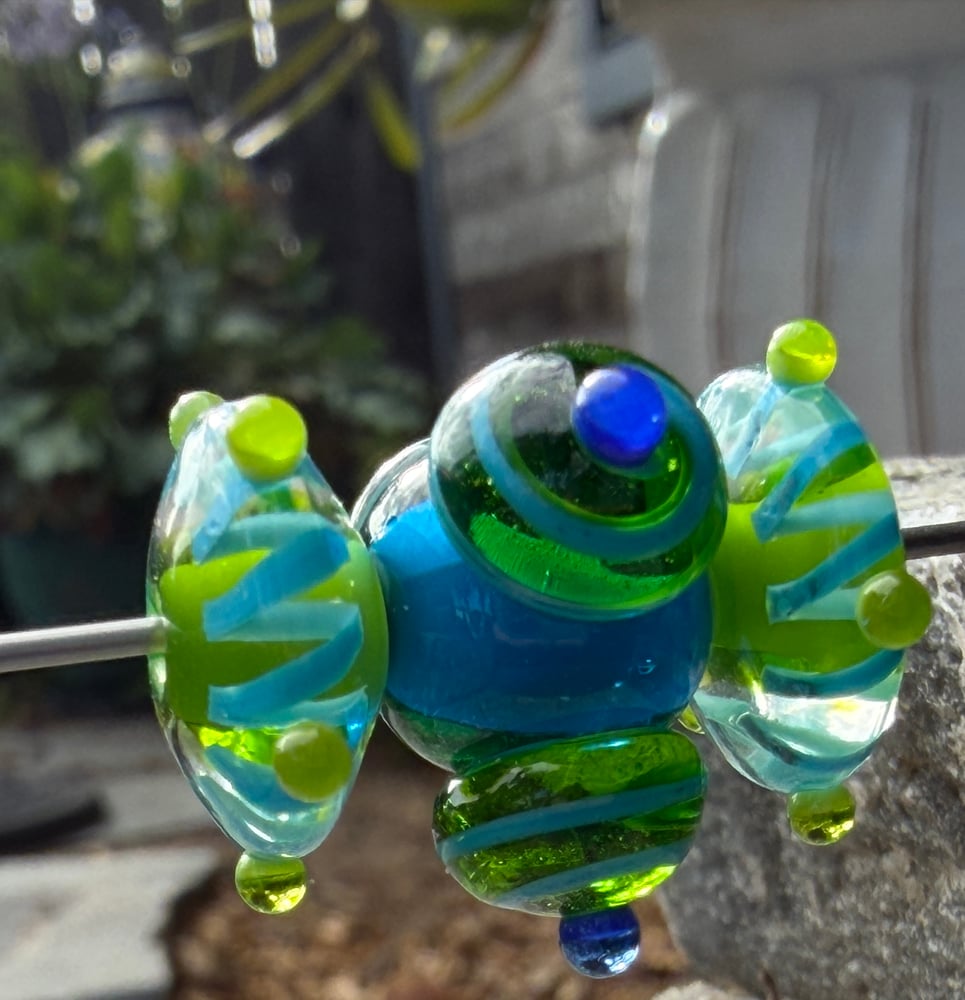 Sputnik with bicone friends. All are approx. 3/4" with 3/32" holes.